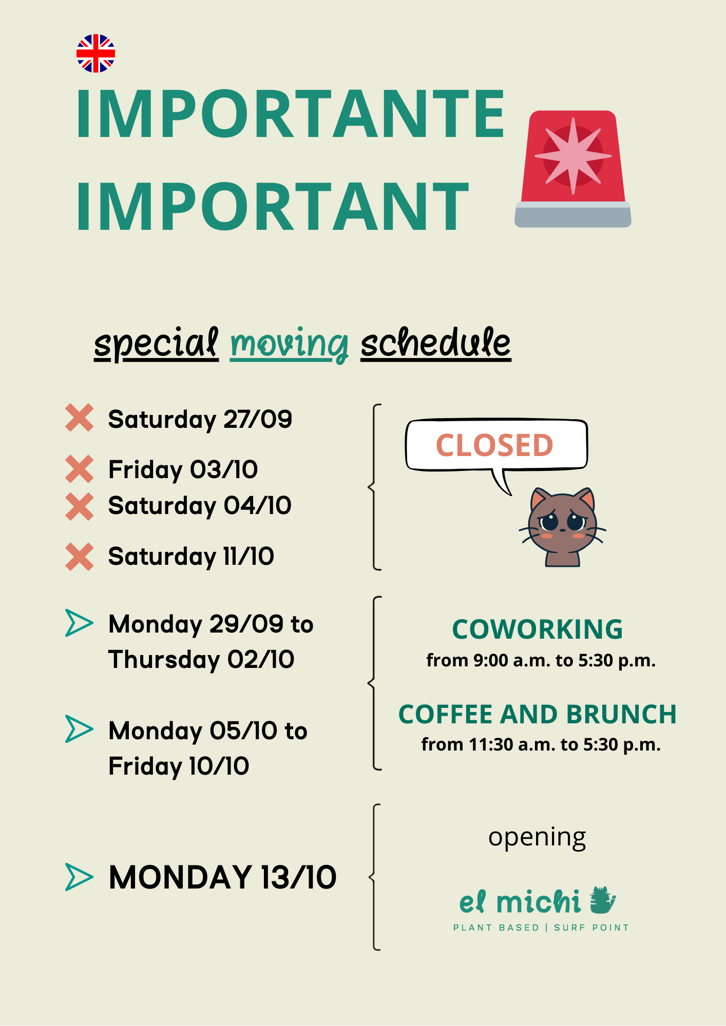 Estamos cambiando de ubicación y por ello, durante este mes tendremos un horario reducido tanto del café como del coworking space.